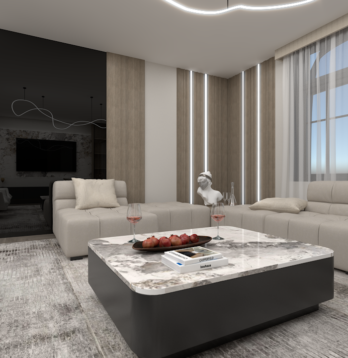Ovaj projekat predstavlja suštinu modernog luksuza i rafinirane estetike, stvarajući prostor u kojem se funkcionalnost i dizajn savršeno prepliću. Inspirisan prirodnim materijalima i skulpturalnim detaljima, enterijer odiše harmonijom i sofisticiranošću.