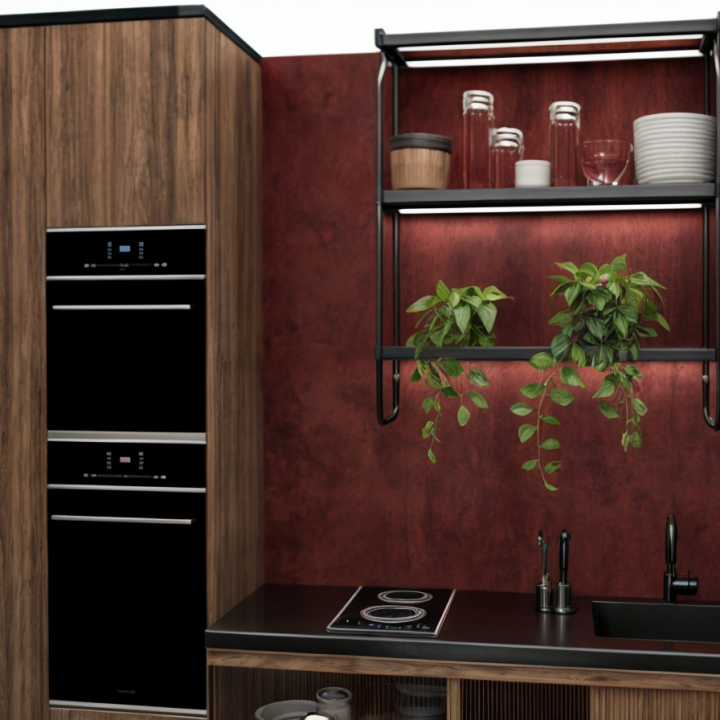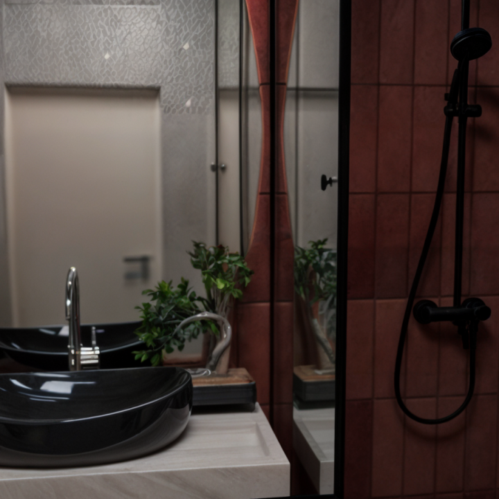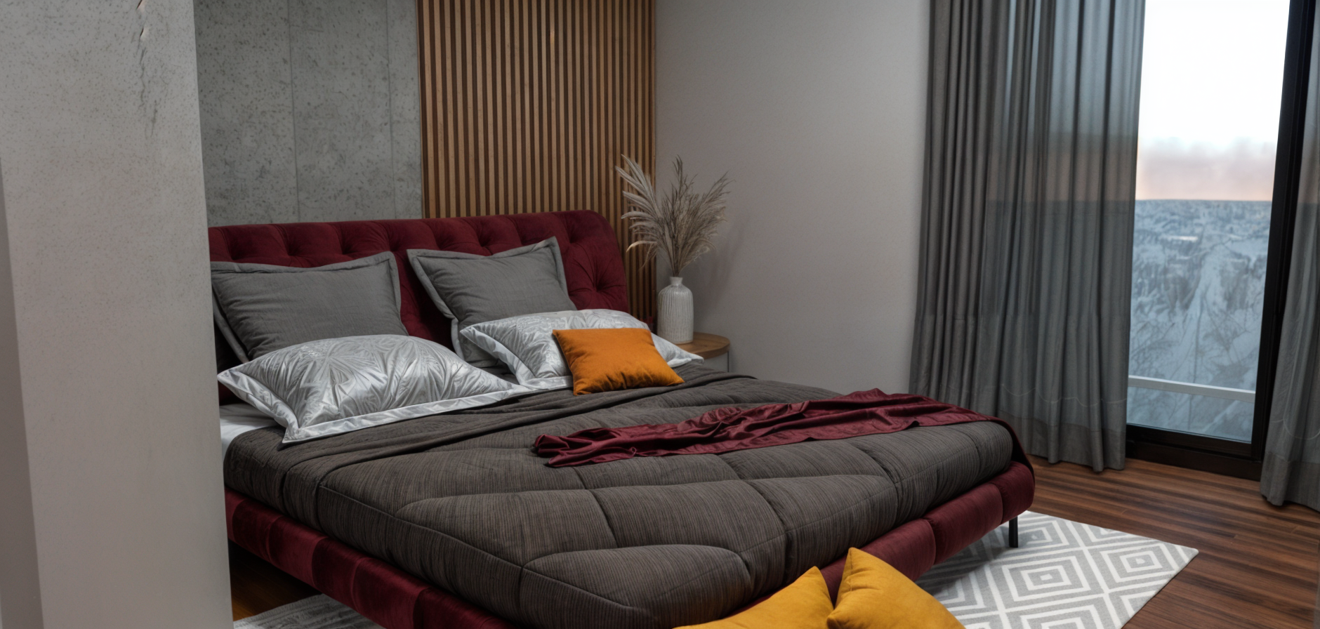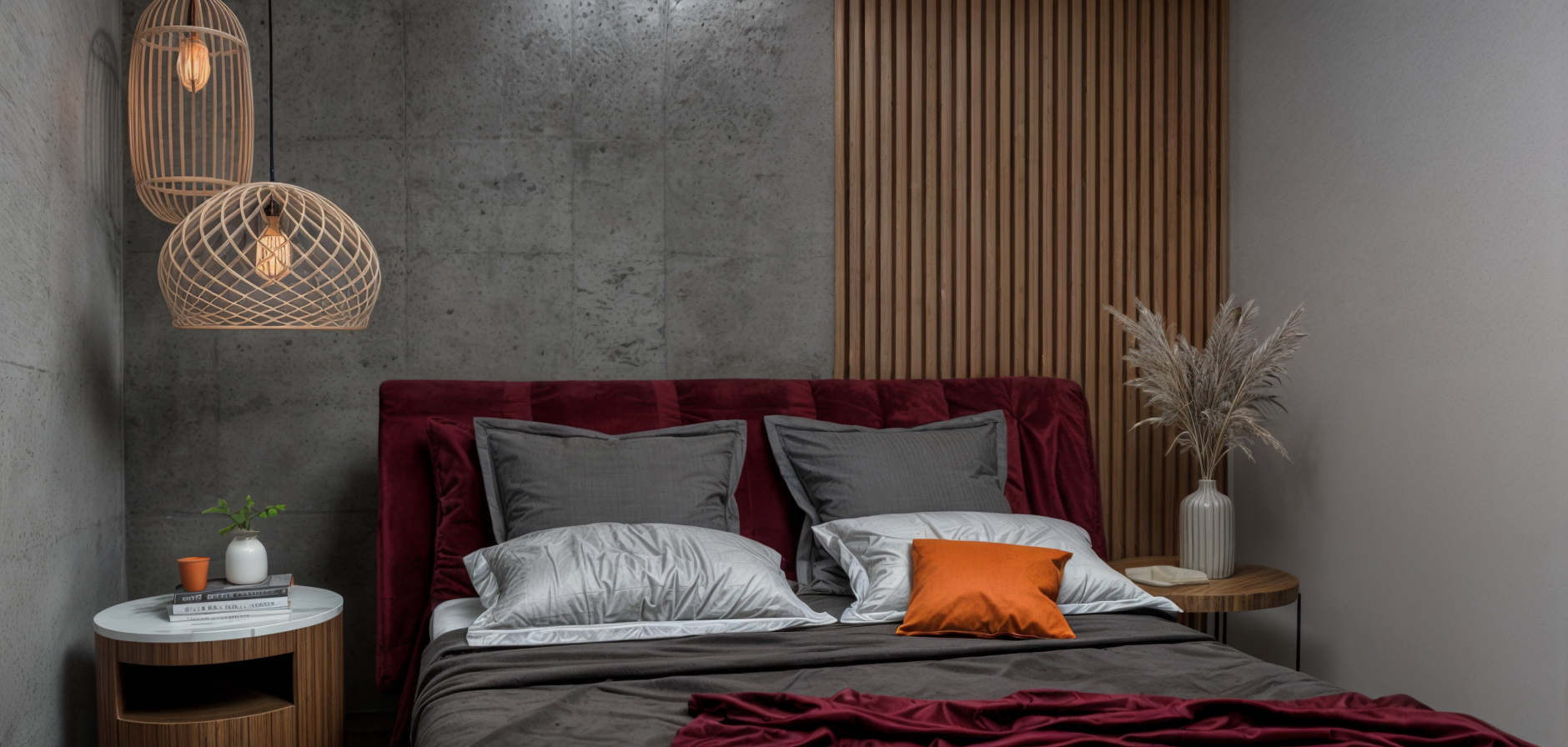Inspiracija za dizajn dolazi iz kombinacije savremenih trendova i klasičnih vrednosti. Poseban akcenat stavljen je na teksture, boje i osvetljenje, kako bi svaki kutak priča svoju priču. Dominantne nijanse bordo crvene, prirodni drveni tonovi i detalji od crnog metala stvaraju sofisticiranu atmosferu, dok zeleni elementi unose svežinu i povezanost s prirodom.